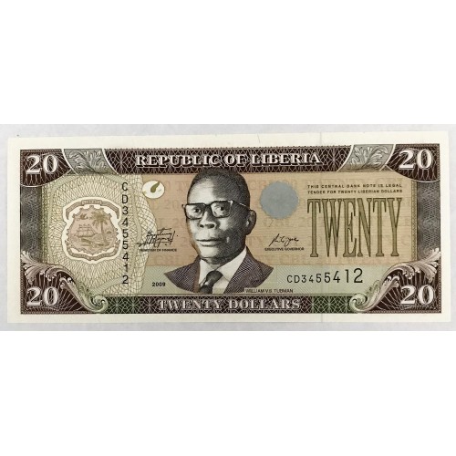 Liberia 2009 Twenty 20 Dollars Banknote. Serial: CD3455412. Choice