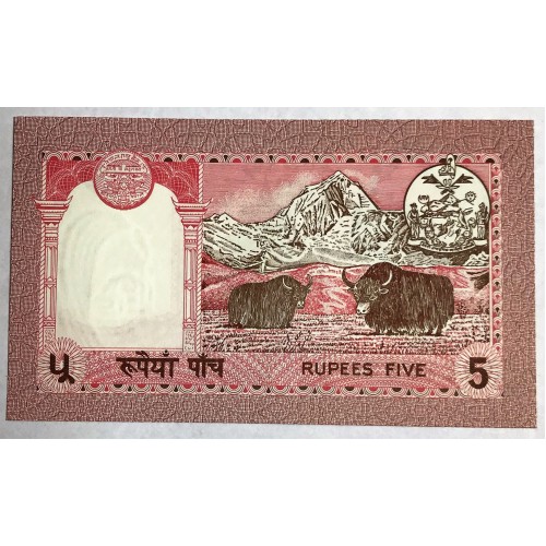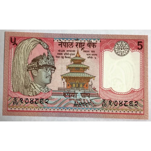 NEPAL 1987 . FIVE 5 RUPEES BANKNOTE . SERIAL IS 24mm LONG