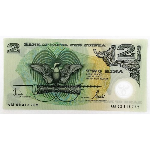 Papua New Guinea 2002 Two 2 Kina Banknote. Serial: AM02315782. Bank of