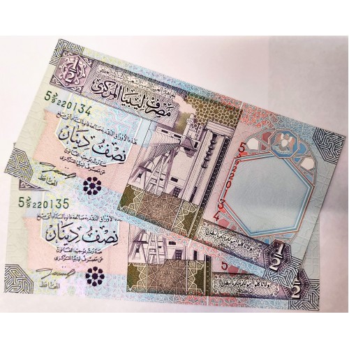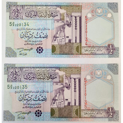 Syria 2004 1/2 Half Pound Banknotes. Serial: 5 ?/9 220134-35. Consecutive Pair.