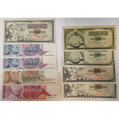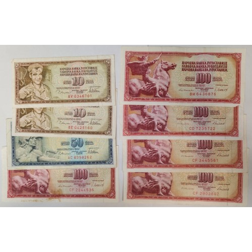 Yugoslavia 1965. 2x Ten 10, Fifty 50, 5x One Hundred 100, 2x Five Hundred 500,