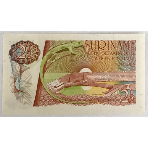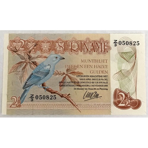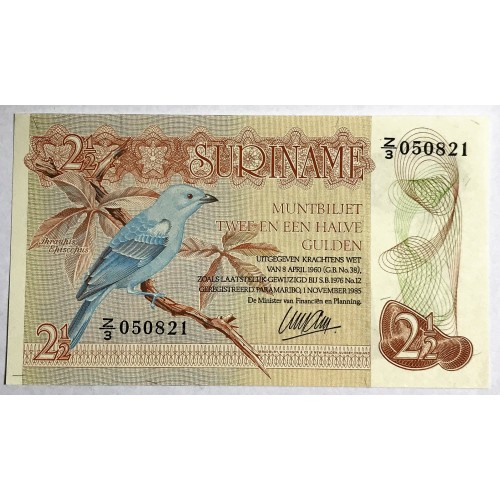 Suriname 1985 Two 2 and 1/2 Half Gulden Banknote. Serial: Z/3 050821,