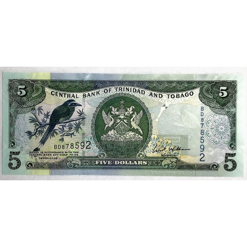 Trinidad and Tobago 2006 Five 5 Dollars Banknote. Serial: BD878592. Choice