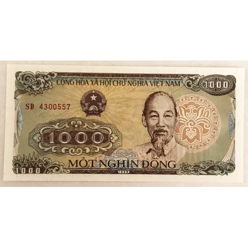 Vietnam 1988 One Thousand 1,000 Dong Banknote. Serial: SD4300557.