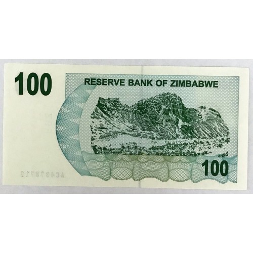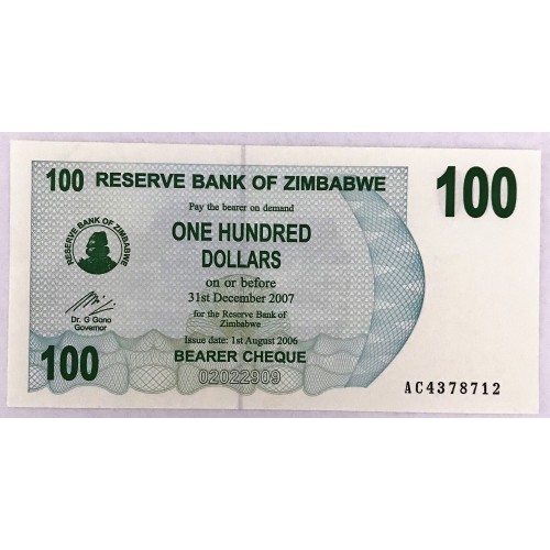 Zimbabwe 2007 One Hundred 100 Dollars Banknote.