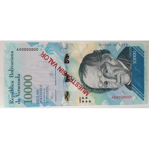 Venezuela 2016 Ten Thousand 10,000 Bolivares Banknote. Serial: A00000000.
