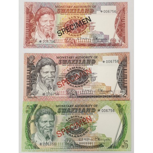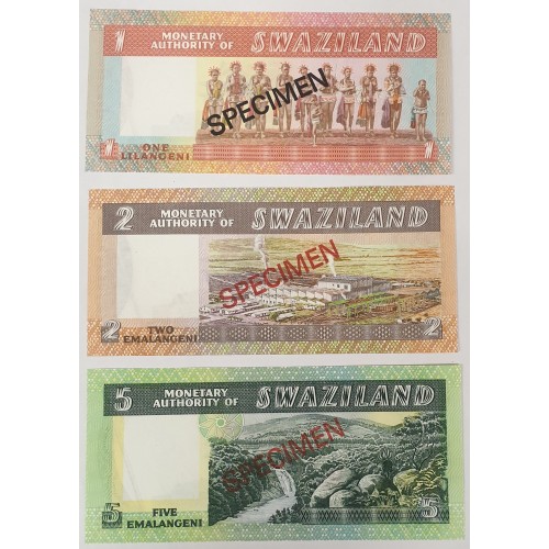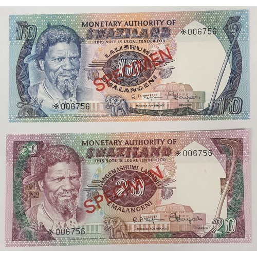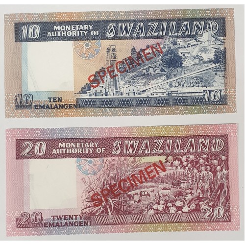 SWAZILAND 1978 . ONE 1 - TWENTY 20 EMALANGENI BANKNOTE . SPECIMEN