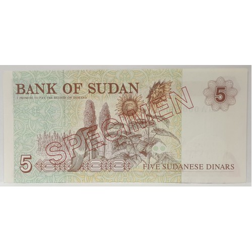 Sudan 1993 Five 5 Dinars Banknote. Serial: GA0000000. Specimen. Very Scarce.