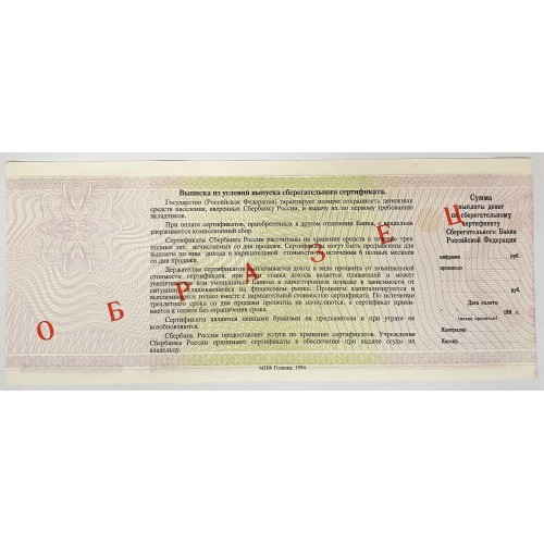 Russia 1994 One Hundred Thousand 100,000 Rubles Banknote.