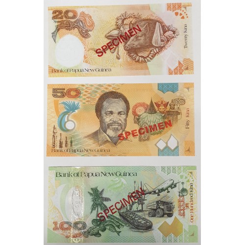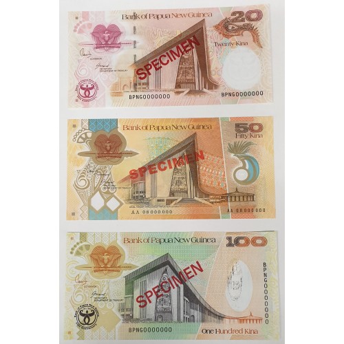 Papua New Guinea 2008 Twenty 20 - One Hundred 100 Kina Banknotes.