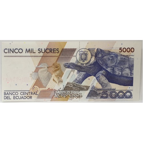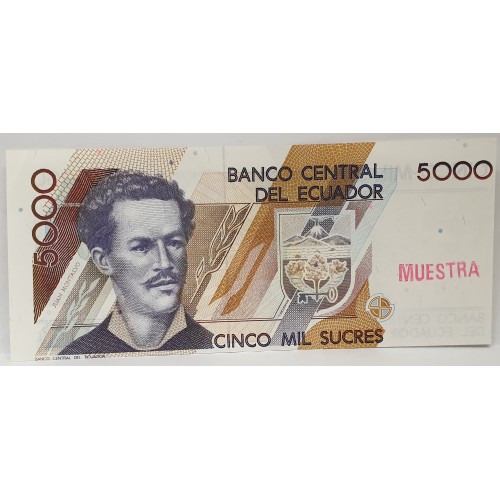 ECUADOR 1987 . FIVE THOUSAND 5,000 SUCRES . SPECIMEN BANKNOTE