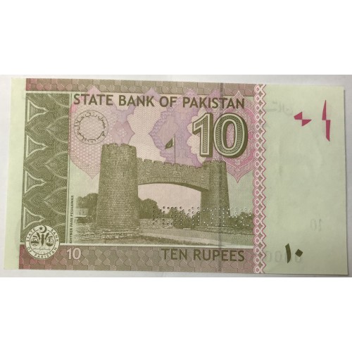 Pakistan 2017 Ten 10 Rupees. Serial: 0000000. Specimen Perforated.
