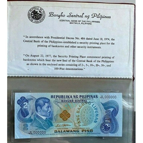 Piso Banknotes. Serial: JL000000. Rare Booklet.