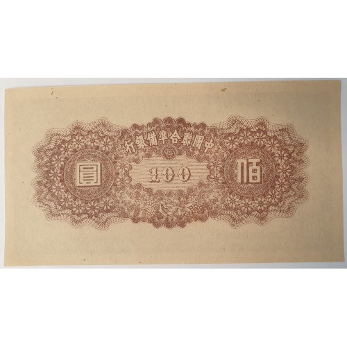 China 1945. One Hundred 100 Yuan Banknote. Serial: (27). Specimen. Military