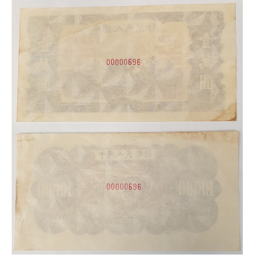 China 1949.2 x Ten Thousand 10,000 Yuan Banknote. Serial:(I II III) 00000000/