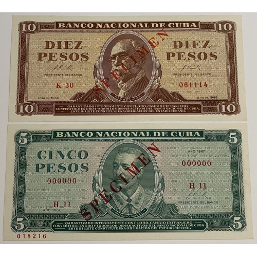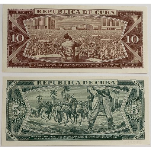 Cuba 1966-1967 Five 5 and Ten 10 Pesos Banknotes.