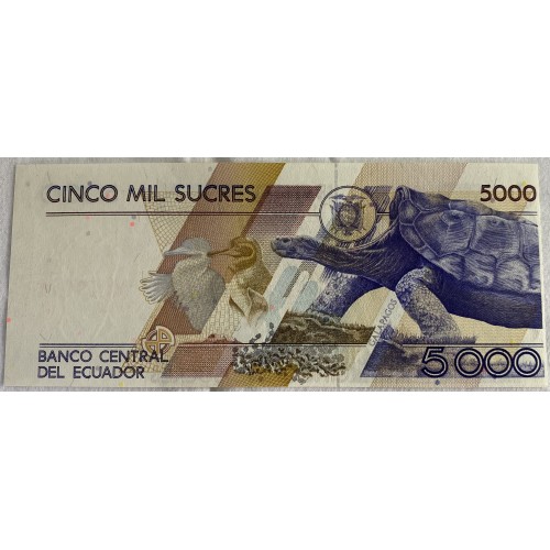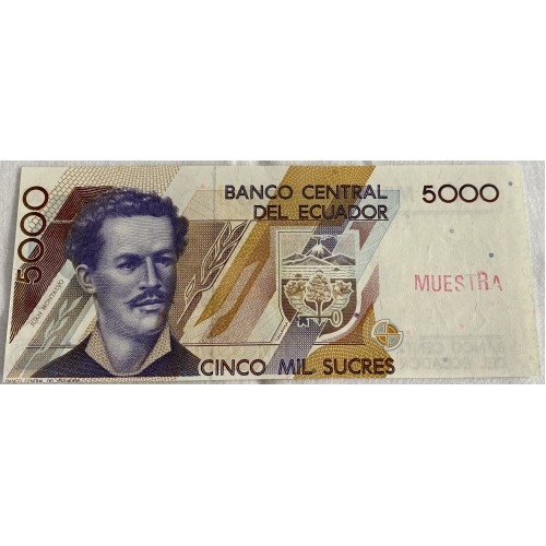 Ecuador 1996 Five Thousand 5,000 Sucres Banknote. Specimen / Error.