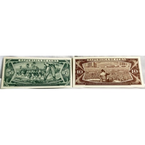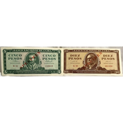 Cuba 1965-1966 Five 5, Ten 10 Pesos Banknotes. Serial: H56/158918,