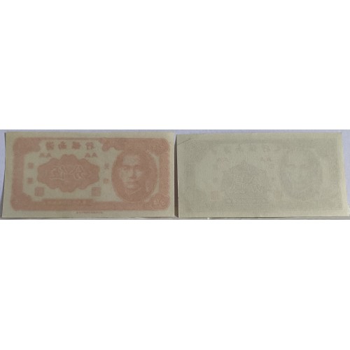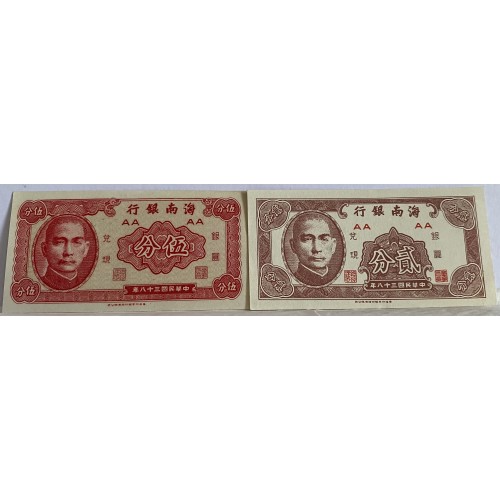 China 1949 Five 5 and Ten 10 Cents Banknotes. Specimen Serial: AA-AA.