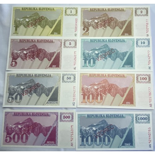 SLOVENIA 1990 . ONE 1 - ONE THOUSAND 1,000 TOLARJEV BANKKNOTES . SPECIMEN