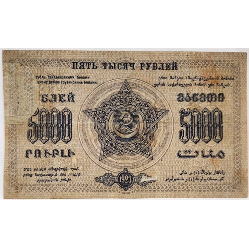 Russia 1923 Five Thousand 5,000 Roubles Banknote. Specimen. Uniface.