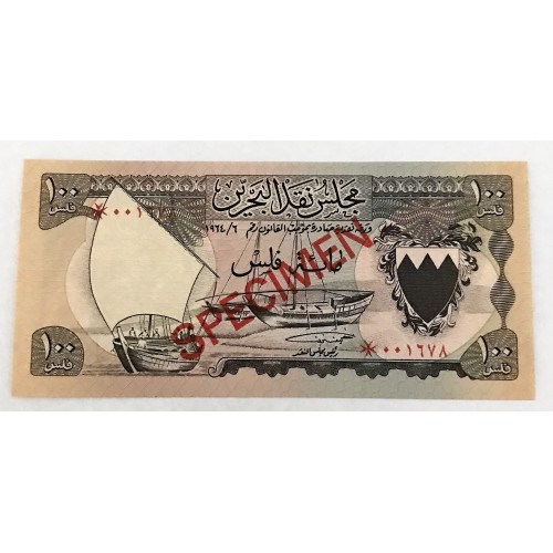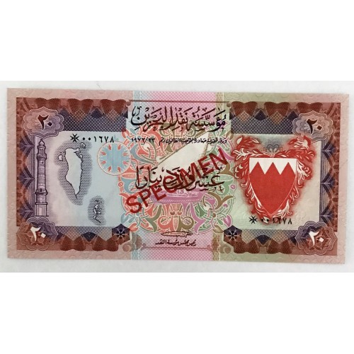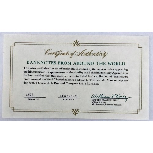 BAHRAIN 1978 . ONE HUNDRED 100 FILS - TWENTY 20 DINARS BANKNOTES . SPECIMEN SET