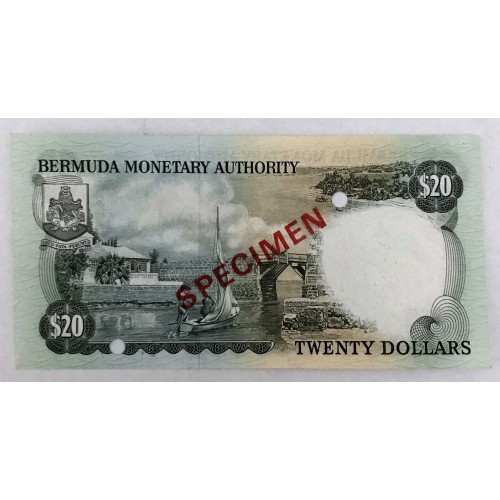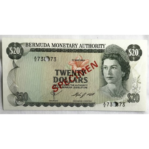Bermuda 1984. 20 Dollars Banknote. Serial: A/2 738 ?73. Specimen.