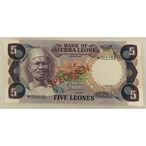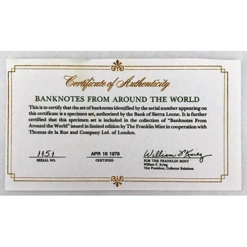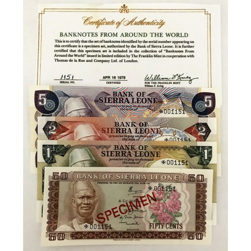 Sierra Leone 1979 Fifty 50 Cents - Five 5 Dollars Banknotes. Serial: *001151.