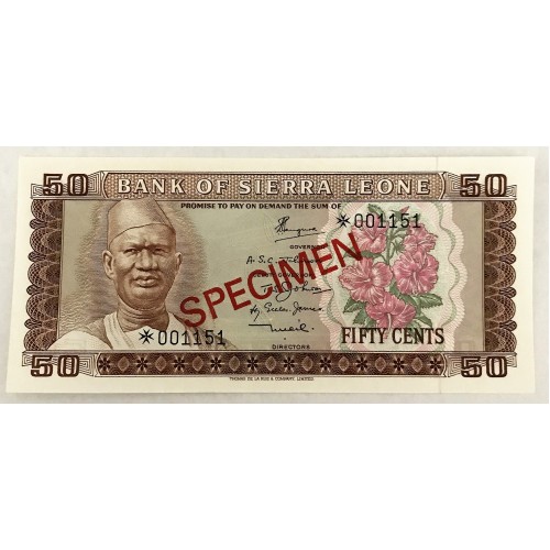 SIERRA LEONE 1979 . FIFTY 50 CENTS - FIVE 5 DOLLARS BANKNOTES . SPECIMEN