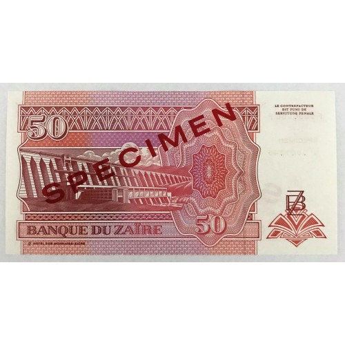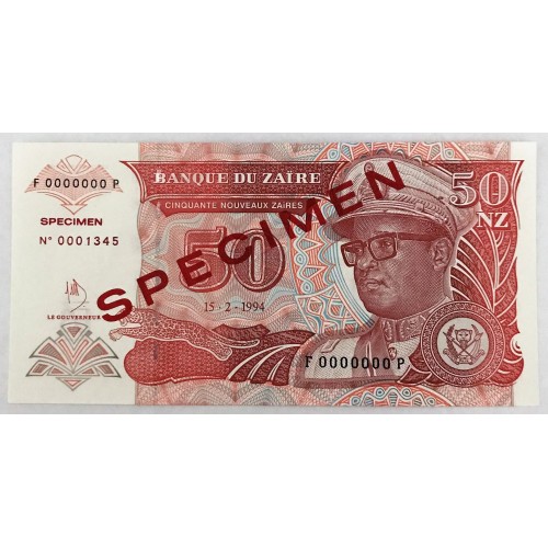 ZAIRE 1994 . FIFTY 50 NOUVEAUX ZAIRES BANKNOTE . SPECIMEN