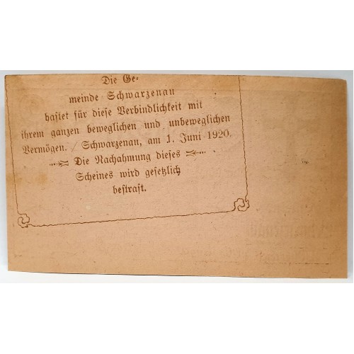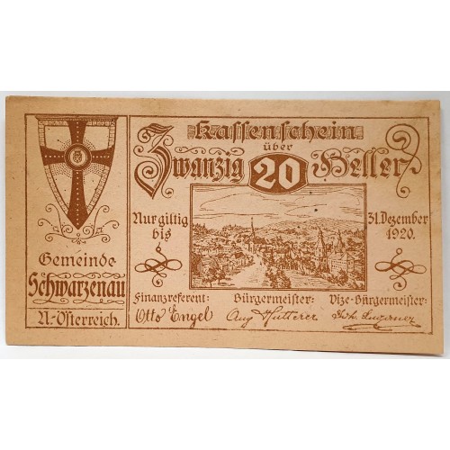 Austria 1920. Twenty 20 Heller. Error Banknote. Notgeld: Schwarzenau & Heller.