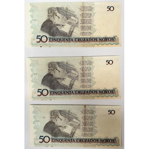 Brazil 1990.50 Cruzados Novos Banknotes. Serial: A4160014976 - 8A. Error.