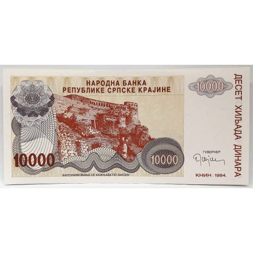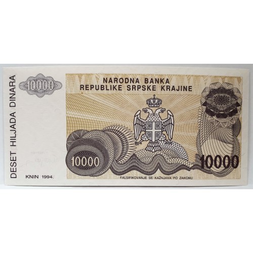 Croatia 1994. Ten Thousnad 10,000 Dinara Banknote. Error. No Serials.