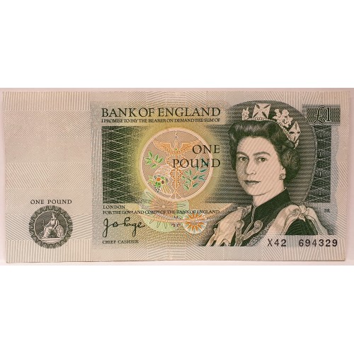 Great Britain UK 1978. One 1 Pound Banknote. Serial: X42694329. Error.