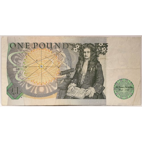 GREAT BRITAIN UK 1981 . ONE 1 POUND BANKNOTE . ERROR . MISSING PRINT