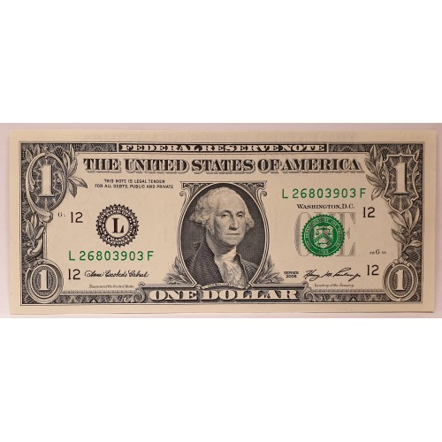 United States of America 2006 One 1 Dollar Banknote. Serial: L26803903F. Error.