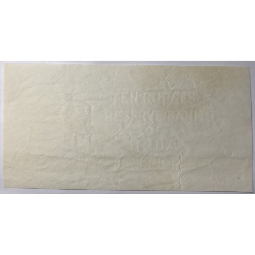 India 1943.Ten 10 Rupees Banknote. Rare Error. Blank. Watermark Paper.