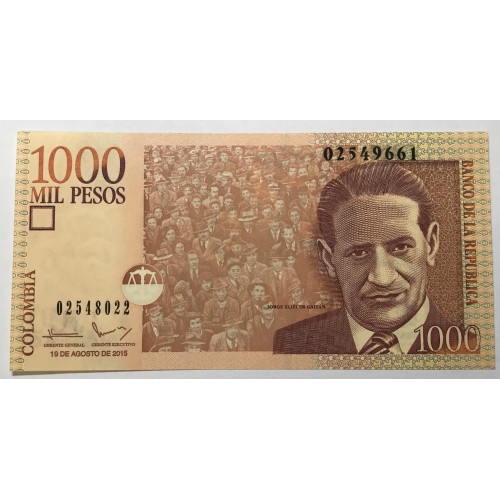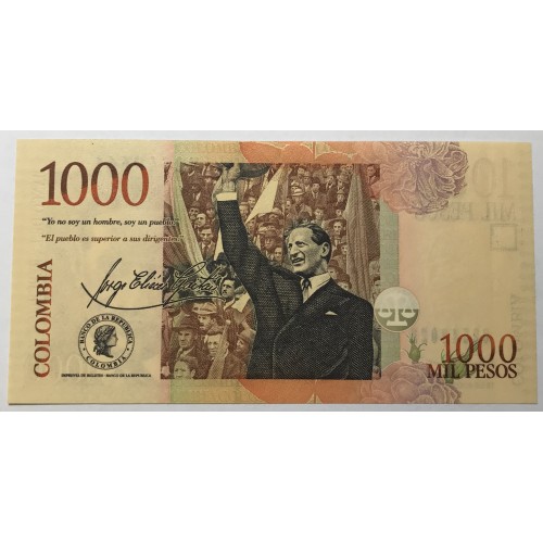 Colombia 2011. One Thousand 1,000 Pesos Banknote.