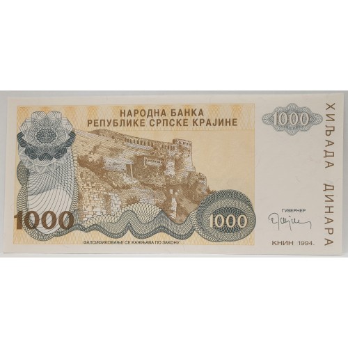 CROATIA 1994 . ONE THOUSAND 1,000 DINARA BANKNOTE . ERROR . NO SERIALS