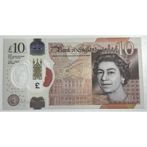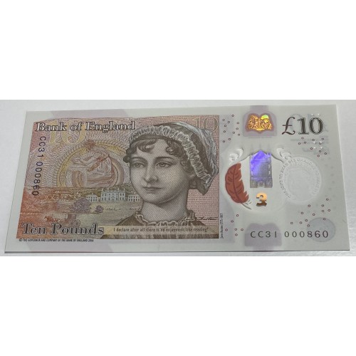 Great Britian UK 2016 Ten 10 Pounds Banknote. Serial: CC31 000860.