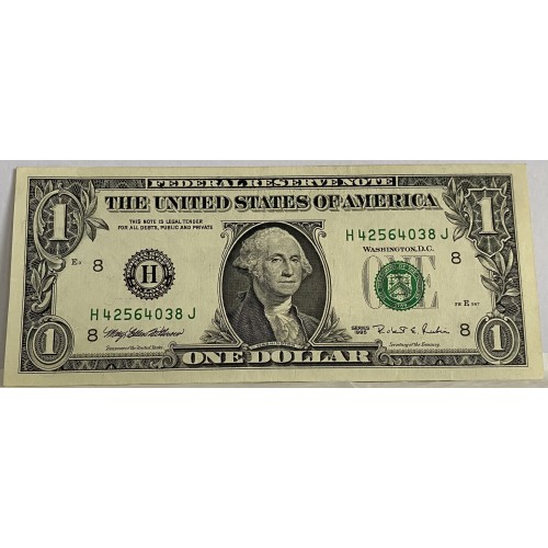 United States of America 1995 One 1 Dollar Banknote. Serial: H42564038J. Error.