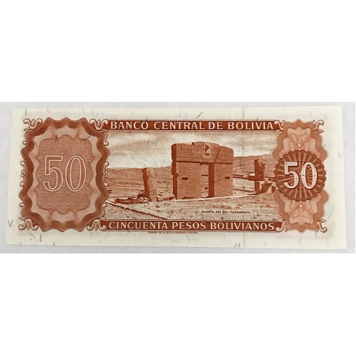 Bolivia 1962. Fifty 50 Pesos Bolivianos Banknote. Serial: Y127525/ Y127526.