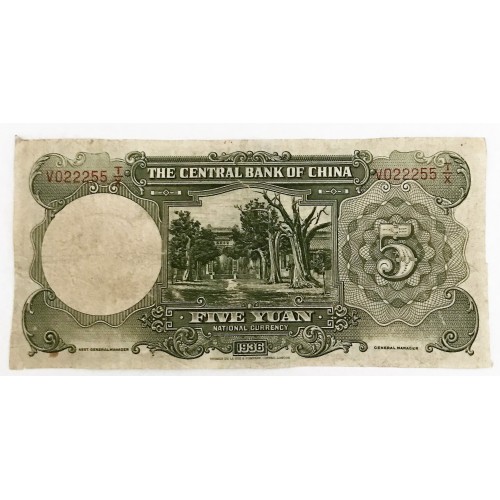 China 1936. Five 5 Yuan Banknote. Serial: V022255 T/X. Error. Serial  Numbers
