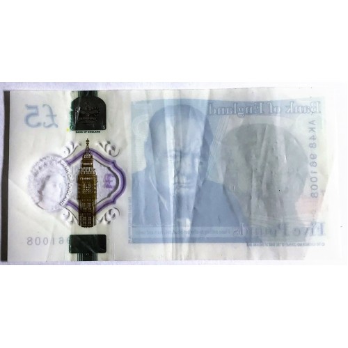 Great Britain UK 2017. Five 5 Pounds Banknote. Serial: AK48961008.