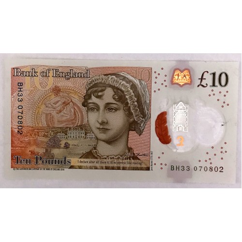 Great Britain UK 2017. Ten 10 Pounds Banknote. Serial: BH33070802.