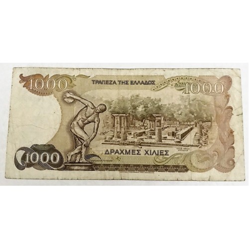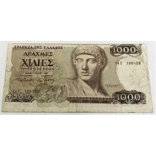 Greece 1987. One Thousand 1,000 Drachmai Banknote. Serial: 14180158. Error.