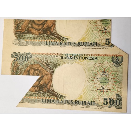 INDONESIA 1992 . FIVE HUNDRED 500 RUPIAH BANKNOTE . ERROR . MISCUT