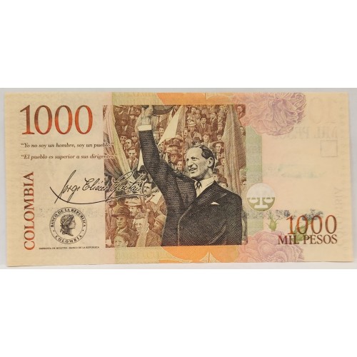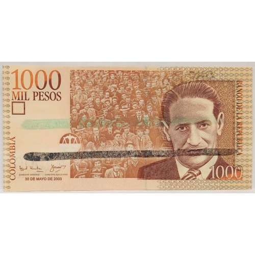 Columbia 2003 One Thousand 1,000 Pesos Banknote. Error. No Serials.