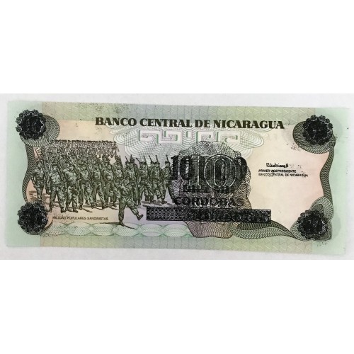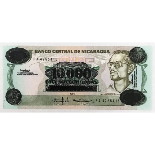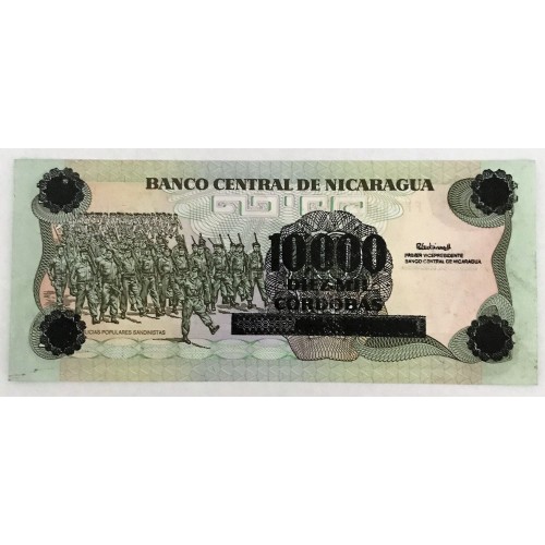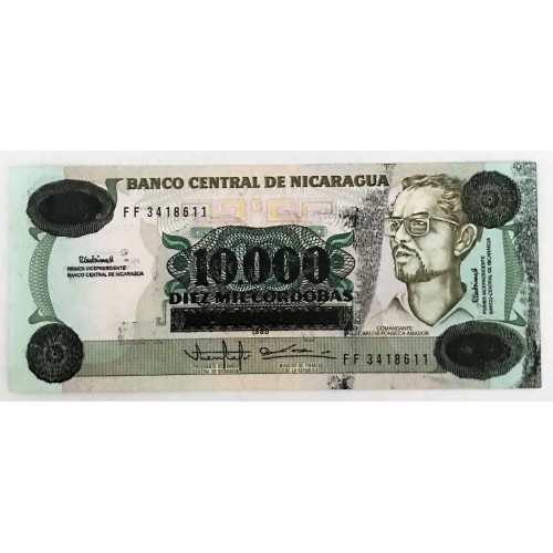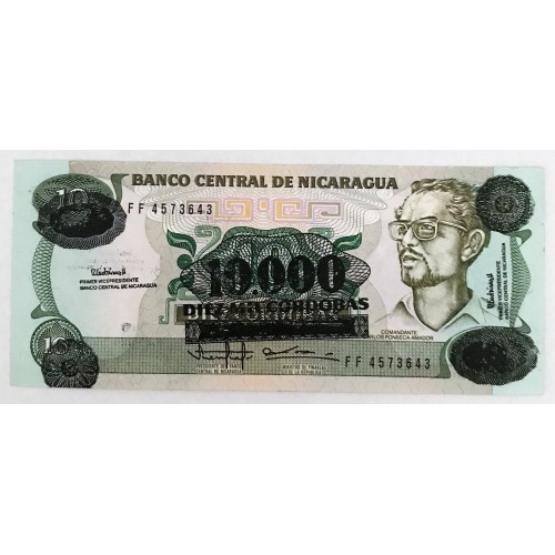 Nicaragua 1989 Ten Thousand 10,000 on Ten 10 Cordobas Banknote.