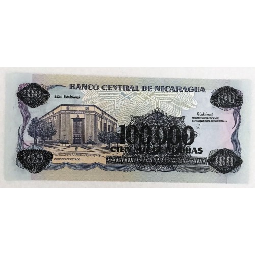 Nicaragua 1989 One Hundred Thousand 100,000 on One Hundred 100
